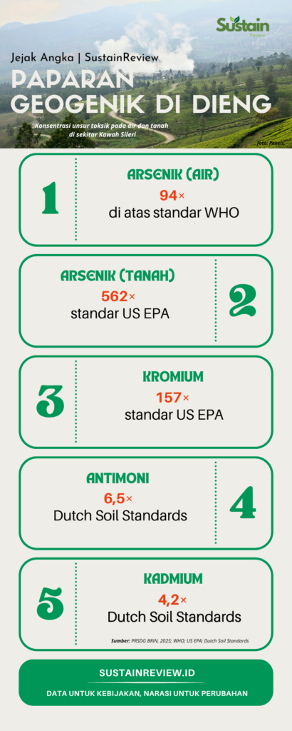 PENGEMBANGAN energi panas bumi di Indonesia tidak sepenuhnya bebas risiko. Studi terbaru di kawasan Dataran Tinggi Dieng menunjukkan bahwa sistem geotermal juga membawa jalur paparan unsur geogenik yang dapat berinteraksi langsung dengan air, tanah, pangan, dan manusia.