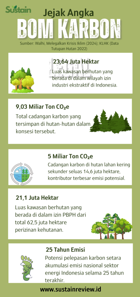Angka tersebut bukan statistik biasa. Walhi menegaskan, jika kawasan berhutan di dalam konsesi ini dibuka sepenuhnya, Indonesia berpotensi melepaskan emisi setara akumulasi emisi nasional sektor energi selama 25 tahun terakhir. Sebuah lompatan emisi yang akan meniadakan hampir seluruh upaya penurunan emisi yang telah dilakukan.