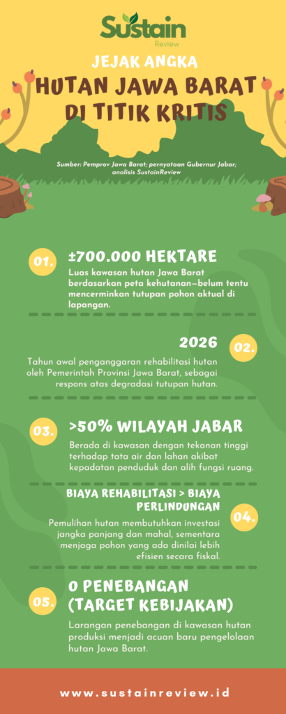 Jawa Barat adalah salah satu provinsi dengan kepadatan penduduk tertinggi di Indonesia. Tekanan terhadap ruang hidup, air, dan pangan terus meningkat. Dalam konteks ini, hutan tidak lagi cukup diposisikan sebagai aset ekonomi. Tapi, telah berubah menjadi infrastruktur ekologis.