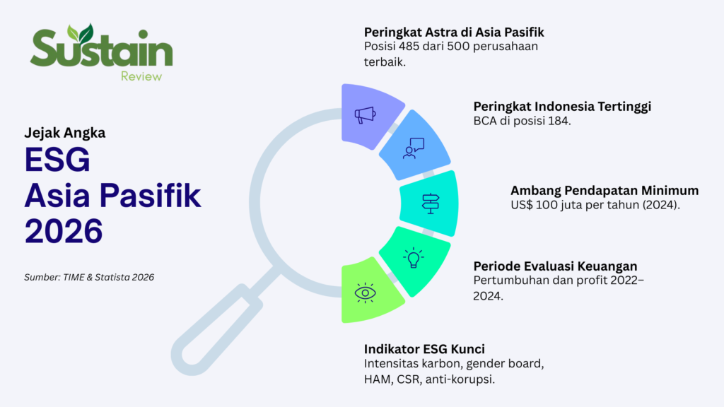 PENGAKUAN internasional kini tidak lagi semata soal laba. Tapi, juga soal tata kelola, karbon, dan transparansi. Masuknya PT Astra International Tbk ke daftar 500 perusahaan terbaik Asia Pasifik 2026 versi TIME-Statista membuka satu pertanyaan penting, seberapa kompetitif ESG korporasi Indonesia di level regional?