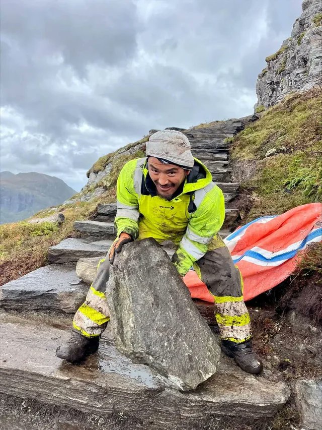 - Foto: X/ @historyinmemes – Perawatan jalur pendakian di kawasan pegunungan Norwegia dilakukan secara manual dengan teknik batu alam. Jalur gunung diperlakukan sebagai infrastruktur publik.