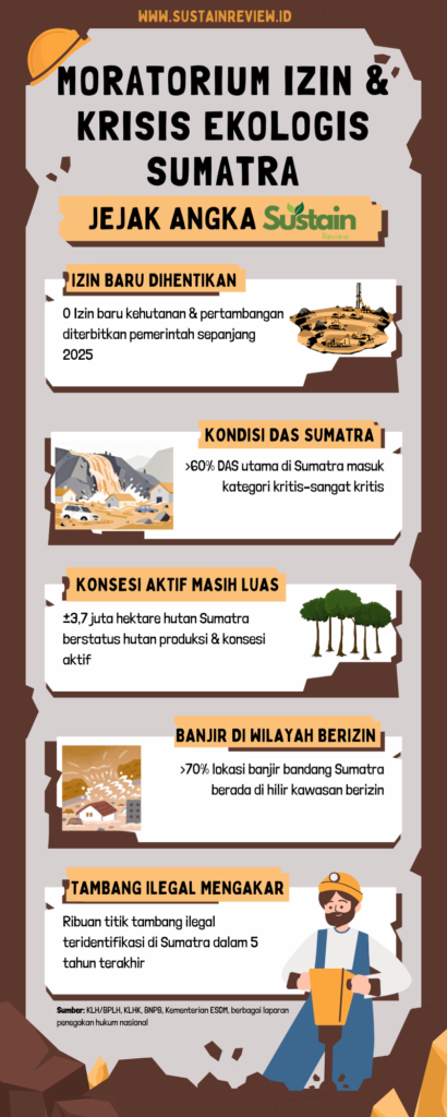 Moratorium izin adalah jeda strategis. Langkah itu memberi kesempatan bagi negara untuk membenahi arsitektur pengelolaan sumber daya alam. Tanpa keberanian mencabut izin bermasalah dan membersihkan jaringan ilegal, jeda ini akan berlalu tanpa perubahan berarti, sementara tekanan ekologis terus bekerja di lapangan. ***