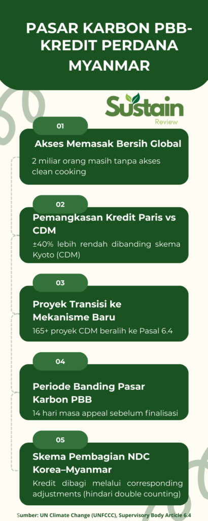 Sisa kredit dihitung untuk target NDC Myanmar. Skema corresponding adjustments memastikan tidak ada penghitungan ganda. Ini fondasi kepercayaan dalam kerja sama internasional.