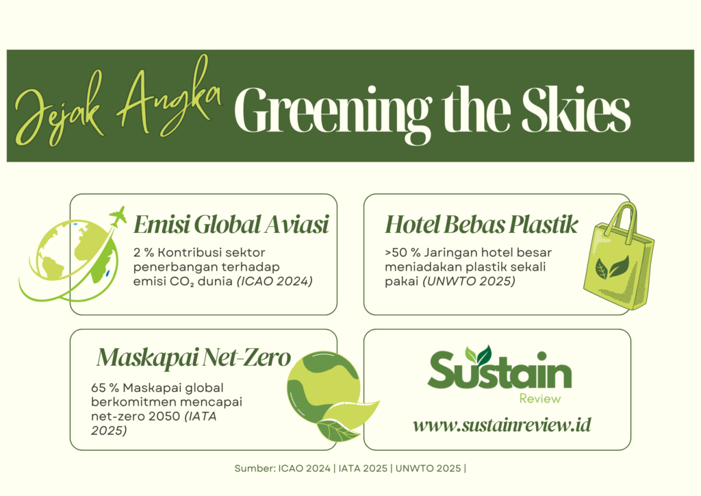 Dari bandara hingga hotel, perubahan memang mulai terasa. Kendaraan listrik menggantikan armada berbahan bakar diesel; maskapai beralih ke bahan bakar penerbangan berkelanjutan (SAF); hotel-hotel meniadakan plastik sekali pakai dan mulai mengandalkan energi bersih.