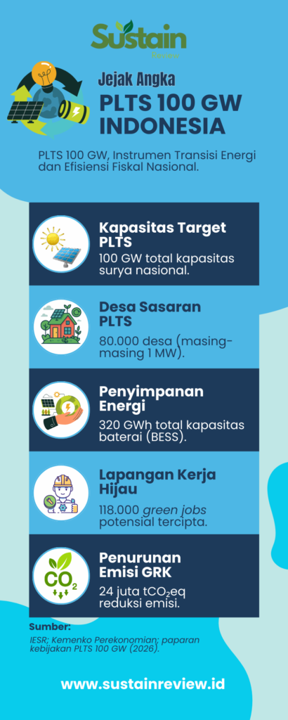 Chief Executive Officer Institute for Essential Services Reform, Fabby Tumiwa, menyebut bahwa dengan strategi implementasi yang tepat, PLTS 100 GW mampu menyediakan listrik andal dan terjangkau bagi puluhan juta warga, sekaligus menghemat subsidi BBM hingga Rp21 triliun. Pernyataan ini penting. Artinya, transisi energi tidak lagi diposisikan sebagai beban fiskal, melainkan sebagai instrumen efisiensi anggaran.