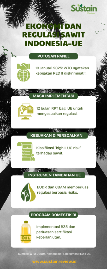 Panel WTO menyatakan kebijakan tersebut tidak memenuhi prinsip perlakuan yang sama (most-favoured nation dan national treatment). Artinya, standar keberlanjutan tetap harus tunduk pada disiplin perdagangan multilateral.