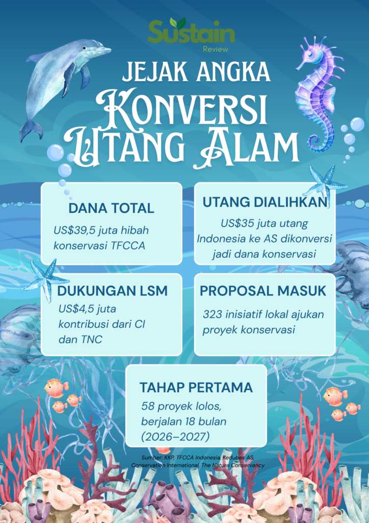 INDONESIA menambah instrumen pembiayaan konservasi berbasis inovasi fiskal. Pemerintah resmi menjalankan skema debt-for-nature swap melalui Tropical Forest and Coral Reef Conservation Act (TFCCA). Nilainya tidak kecil, US$39,5 juta. Dana ini berasal dari pengalihan utang Indonesia kepada Amerika Serikat yang kemudian dikonversi menjadi hibah konservasi.