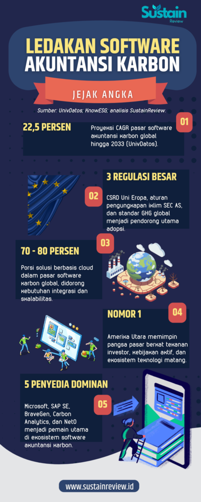 PASAR software akuntansi karbon memasuki fase percepatan baru. UnivDatos memproyeksikan pasar ini akan tumbuh dengan CAGR 22,5 persen hingga 2033, menandakan pergeseran struktural dalam tata kelola emisi global.