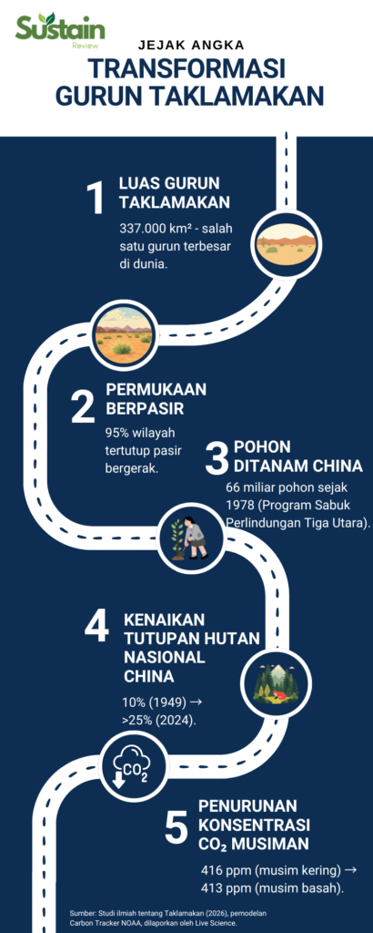 Kasus Taklamakan menunjukkan bahwa lanskap ekstrem pun dapat direkayasa ulang secara ekologis. Namun syaratnya jelas, konsistensi politik, pembiayaan stabil, dan sistem monitoring kredibel.